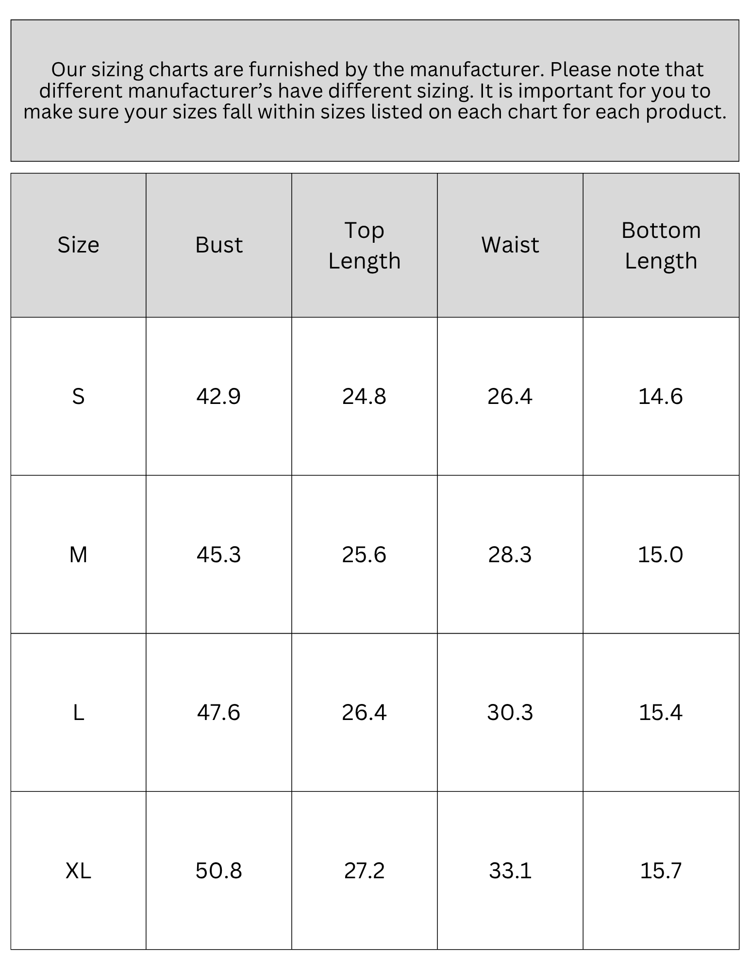 SIZE CHART