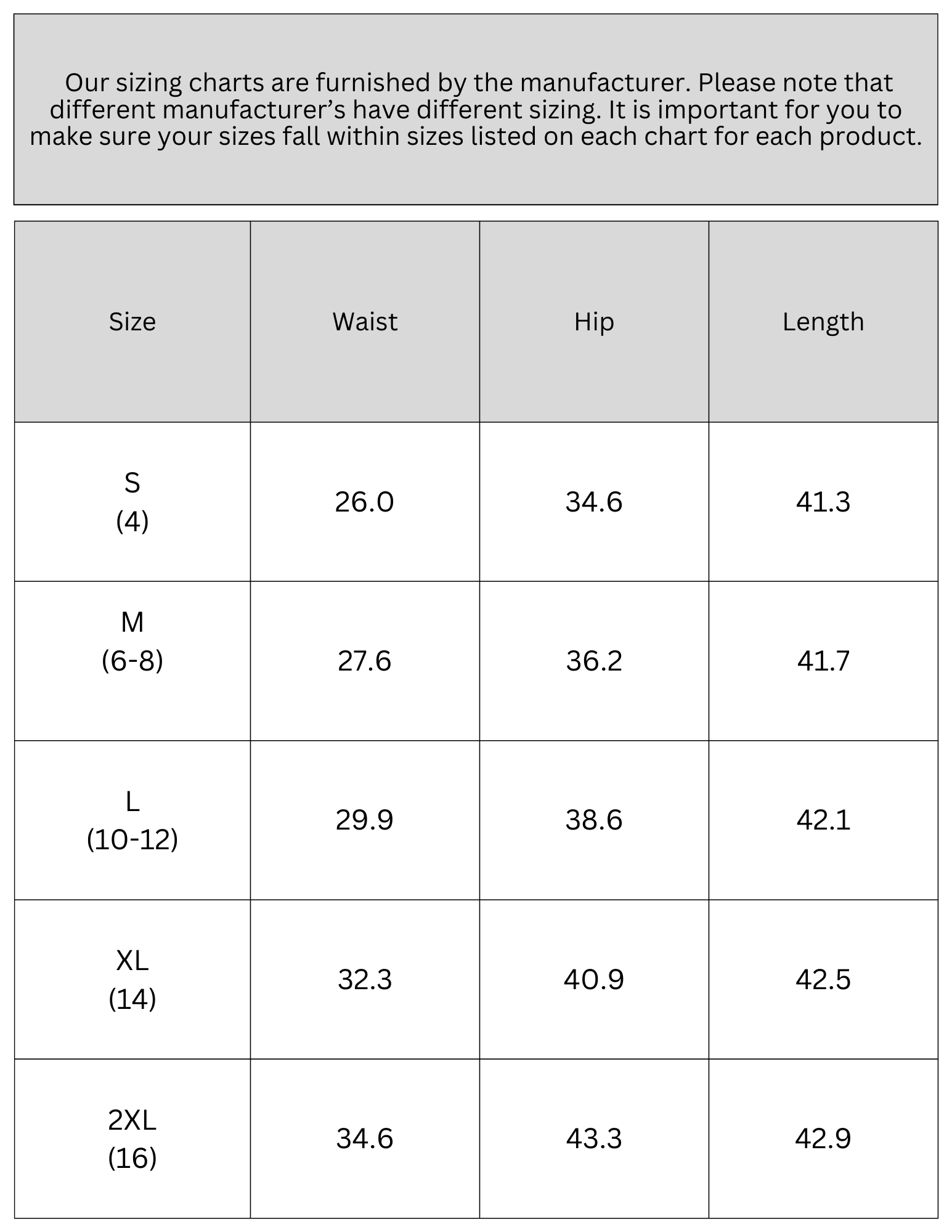 Sizing Guide & Variance