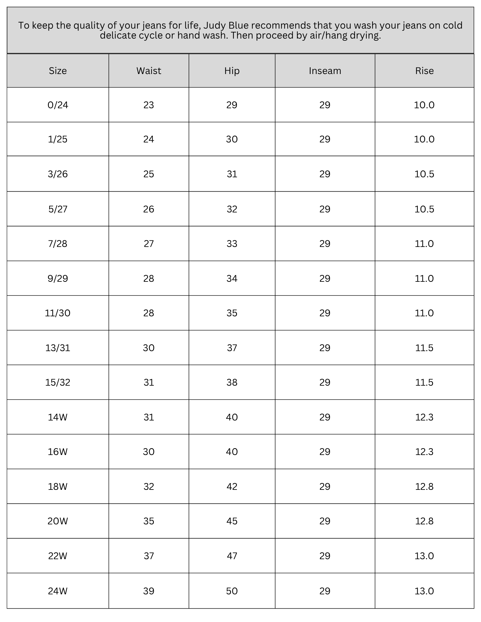 SIZE CHART