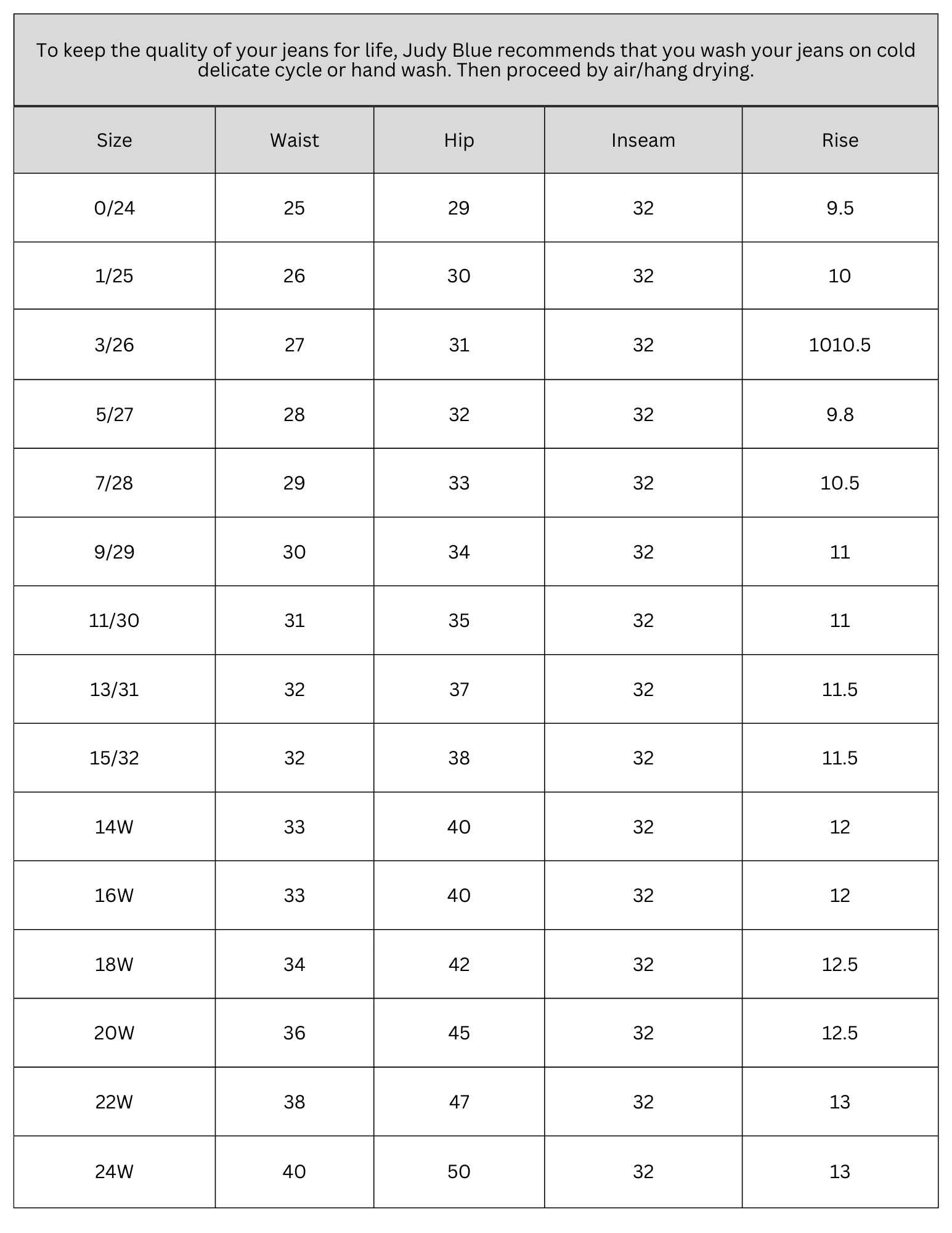 SIZE CHART