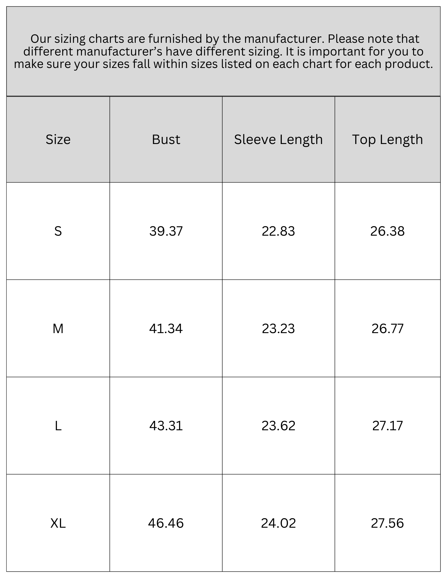 SIZE CHART