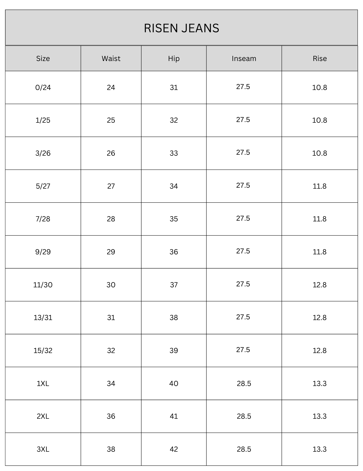 SIZE CHART