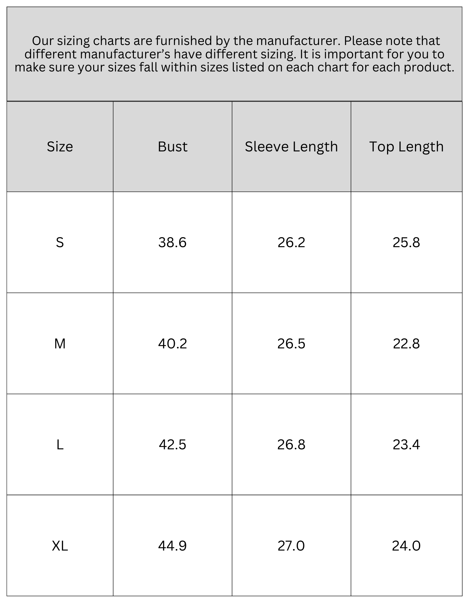 SIZE CHART
